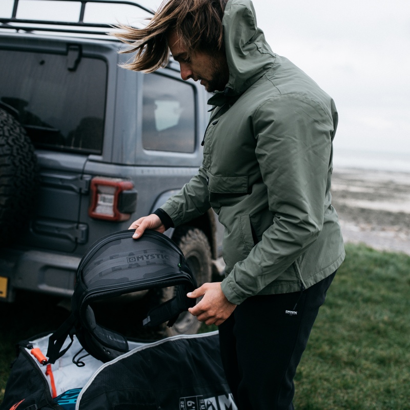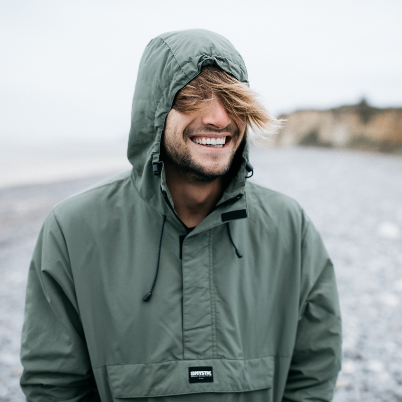 This pullover jacket is made from water repellent nylon Supplex fabric with a super soft fleece lining and protects you from the rain and chill on those wintery beach days.