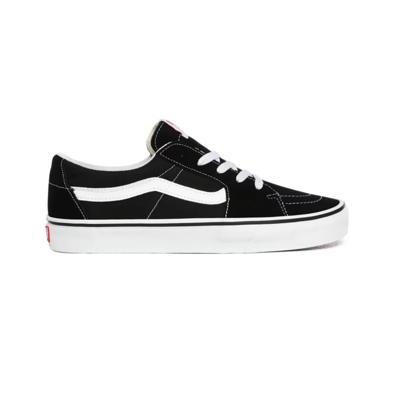 The Sk8-Low, a takedown of the legendary Vans high top skate shoe, is built with an array of colors and materials to provide a familiar Sk8-Hi aesthetic in a low top shoe. Featuring sturdy canvas and suede uppers, the Sk8-Low also includes re-enforced toe caps to withstand repeated wear, padded collars for support and flexibility, and signature rubber waffle outsoles.