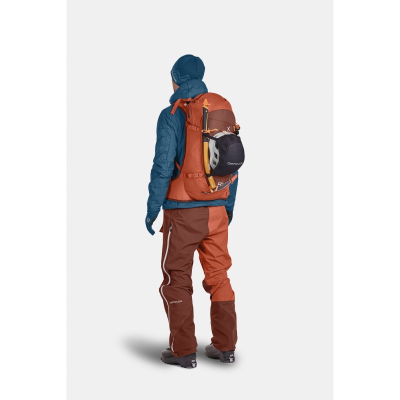 Clever details make this ski touring backpack a practical, versatile companion in the mountains. Your shovel and probe can be comfortably stowed in a separate, emergency equipment compartment where they’ll still be easily accessible. The spacious main compartment is accessible from the top and back, which means all backpack contents will be easily accessible, not least thanks to the bright interior colors. Load control cords, in combination with the foam back and ergonomic straps, allow for balanced weight distribution even over lengthy periods. Even so, a tailored fit means this ski touring backpack will move with you.