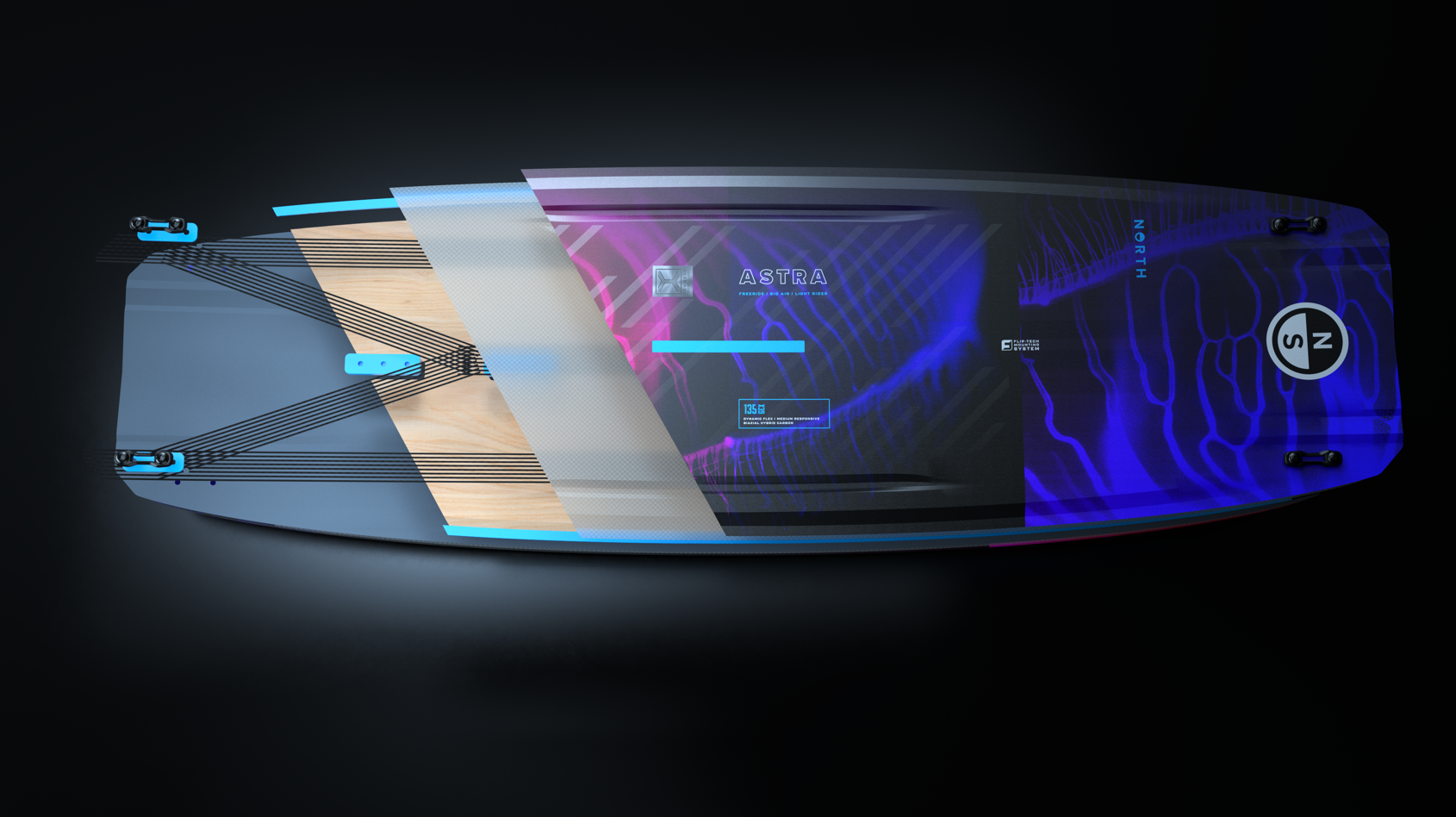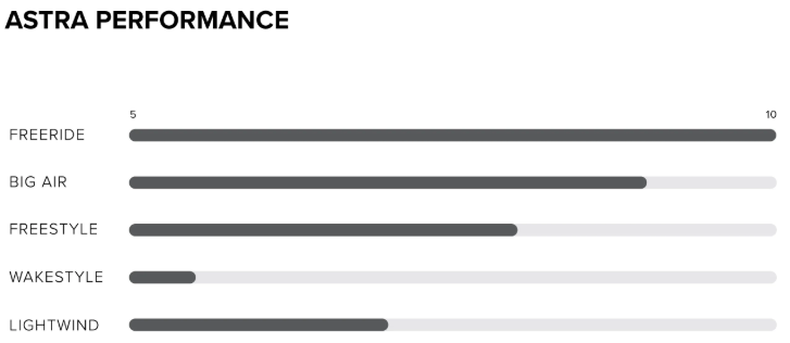 Igriva, a hkrati zmogljiva – Astra ponuja izjemno zmogljivost za lažje kajtarje. Model 2026 Astra smo zasnovali z odzivnim upogibom, posebej za voznike manjših postav, da zagotavlja večji nadzor v različnih pogojih, več udobja in mehkejše pristanke – brez kompromisov pri zmogljivosti. Manjše dimenzije, ožje stojišče in lahka biaxial hybrid carbon konstrukcija z 3DY ojačitvijo omogočajo kajtarjem vseh nivojev ravno pravo mero upogiba. Z učinkovito obliko dna in rockerjem deska hitro drsi po vodi in zlahka gre v veter. Dosleden in zanesljiv oprijem roba. Čist in močan »pop«. Skakati še nikoli ni bilo tako enostavno.
