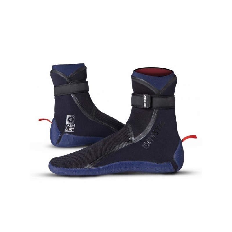 Mystic GUST Split-toe Boot so visoki neoprenski copati z lepljenimi šivi, dodatno lepljenimi na zunanji strani s S-seams tehnologijo, deljen palec ter tanši in vzdržljiv podplat omogoča odličen oprijem in še boljši občutek za desko.