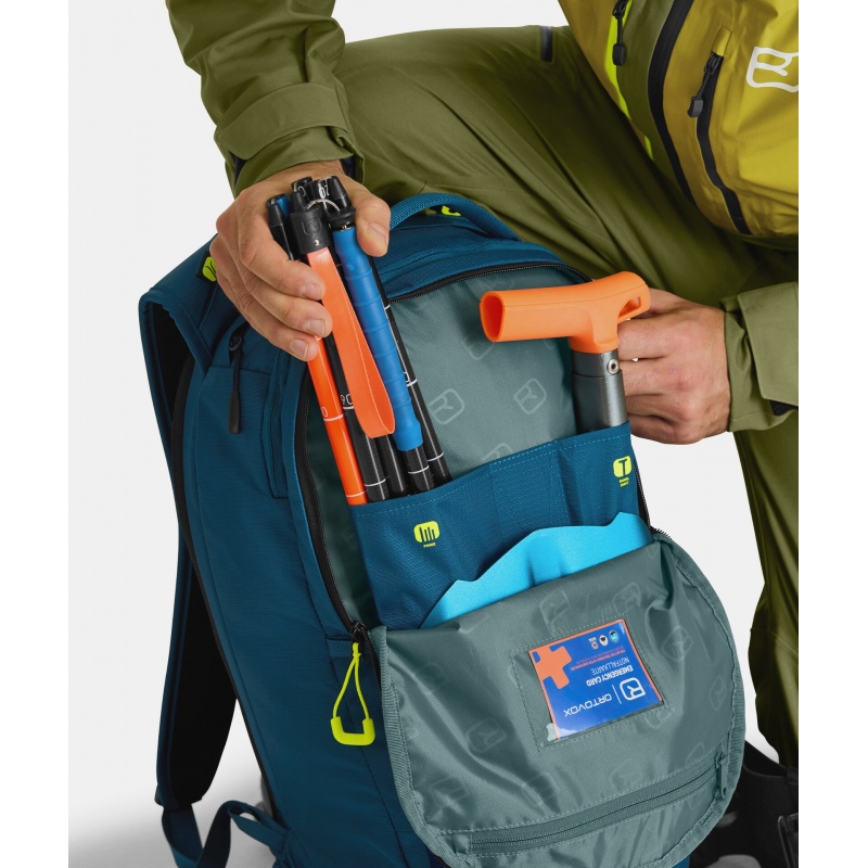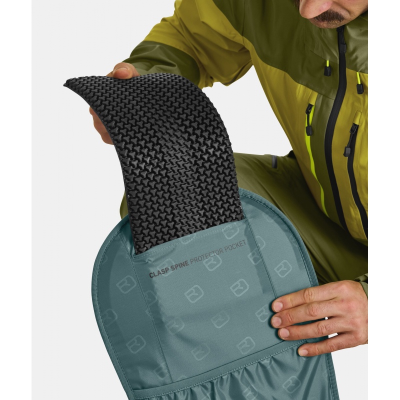 Nahrbtnik za smučanje zunaj urejenih smučišč z možnostjo namestitve hrbtne zaščite Clasp Spine Protector katera je izdelana iz posebne Sas-Tec pene, ki ostane mehka in prožna tudi pri nizkih temperaturah, ustreza vsem zahtevam za osebno zaščitno opremo. Možnost diagonalne pritrditve smuči. Sprednji večji žep za lavinsko opremo. Sprednji spodnji manjši žep z mrežico za pritrditev čelade. Širok vstop v nahrbtnik s sprednje strani skozi zadrgo ali z zadnje strani tudi skozi zadrgo. Širok pas za pritrditev nahrbtnika v pasu z žepom na zadrgo. Hrbtišče je dolžine M in je primerno za osebe, ki so visoke od 170 do 195 cm. Vodoodporne zadrge. Prirejen za uporabo vodnega meha, toplotno izoliran del za cev. Pritrdimo lahko: cepin, smuči širine do 150 mm, snežno desko, palice, lopato, sondo ...
