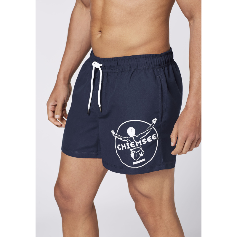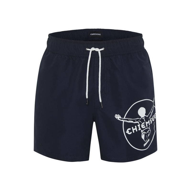 Chiemsee moške kopalne hlače MARRON BAY iz hitro sušečega materiala so udobne in praktične hlače tako za uživanje na plaži kot za uživanje toplih poletne din po mestnih uličicah. Njihov pečat jim vsekakor daje velik Chiemsee logotip na levi hlačnici. Poleg dveh stranskih žepov za roke imajo hlače še en z ježkom zaprt žep zadaj, ki ima v notranjosti vrvico za ključe. Pozabiti pa ne smemo tudi na notranjo mrežico. Kot že rečeno ravnopravšnje za odbojko na mivki, plavanje,... v kombinaciji s katero od naših kratkih majic, pa so več kot odlične za druženje s prijatelji na pijači.