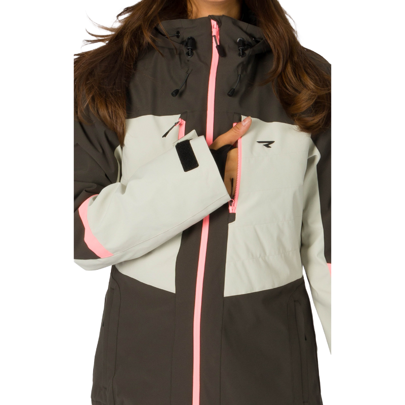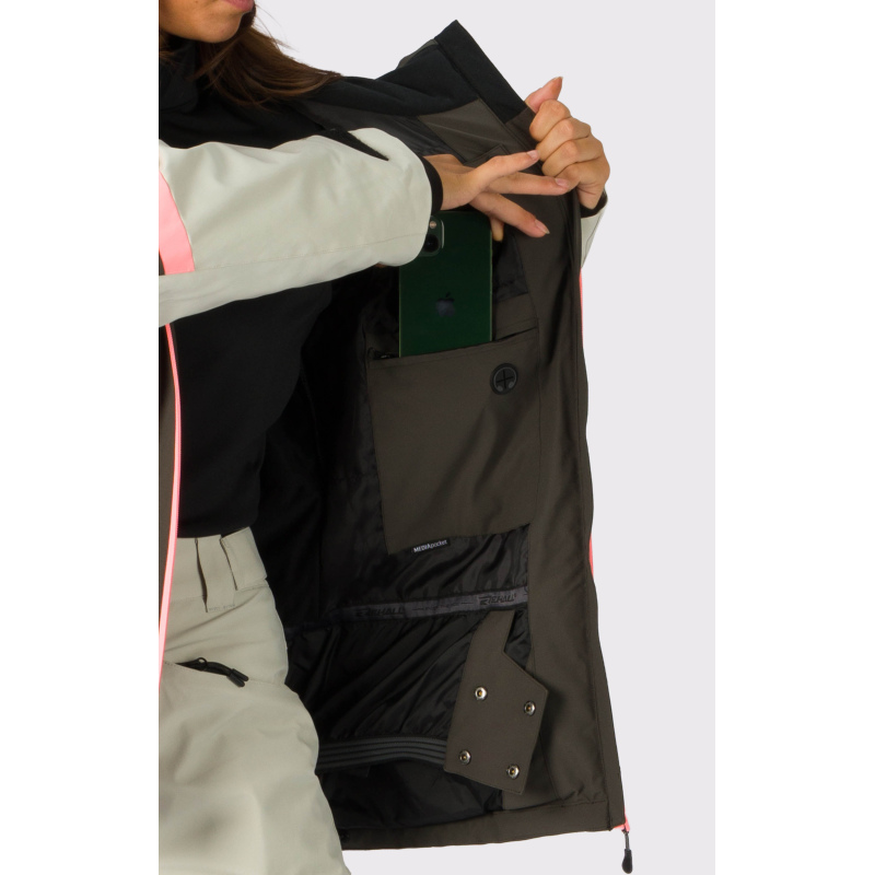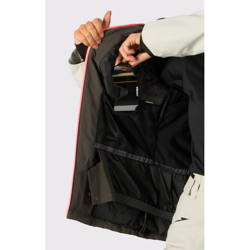 Nastavljiva kapuca in snežna zaščita (snow skirt) nudita dodatno zaščito pred vetrom in snegom, zanke za palce pa poskrbijo, da rokavi ostanejo na mestu in preprečujejo vdor mraza. Z več notranjimi in zunanjimi žepi, vključno s priročnim žepom za smučarsko karto, imate vedno vse pri roki. Jakna ni le izjemno funkcionalna, temveč tudi stilsko dovršena – njen sodoben dizajn je kot nalašč za sodobne navdušenke nad zimskimi športi.